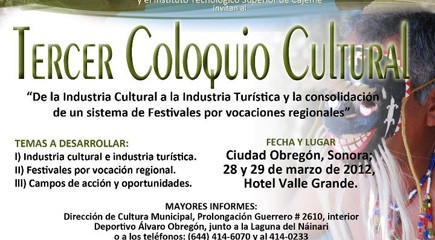 Los días 28 y 29 de marzo se realizará en Ciudad Obregón el Tercer Coloquio Cultural que lleva por título "De la Industria Cultural a la Industria Turística y la consolidación de un sistema de Festivales por vocaciones regionales".