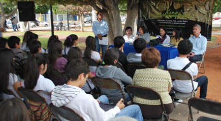 Presentes en el presídium estuvieron también Josefina González Molina, en representación de Martha Gómez Abril, directora de Ponguinguiola, y el maestro Rosendo Arrayales, facilitador en el CBTIS 188 y CBTIS 37, del programa Construye-t de la ONU y SEP.