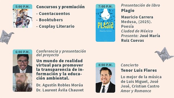 A partir de las 4:30 de la tarde y hasta las 10:00 de la noche en la Plaza "Álvaro Obregón" se abre el espacio cultural con stands, conferencias y música.