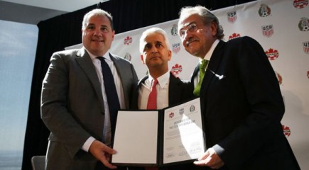 La candidatura, que se puede presentar hasta diciembre de 2018, fue anunciada en el One World Trade Center de Nueva York, en un evento en el que participaron los presidentes de las tres federaciones.