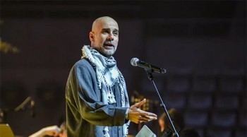 En la introducción del concierto, el entrenador catalán, con pañuelo palestino, ha afirmado que las bombas "quieren provocar silencios" ante lo que ha dicho que hay que dar un paso adelante, y que cada sonido del concierto recordará no perder la memoria de décadas de falta de libertad del pueblo palestino.