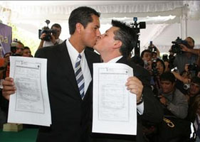 Cd. de México.- La primera boda entre dos personas del mismo sexo se celebró esta semana en el Distrito Federal y así se estrenó la Ley de Sociedades de Convivencia.