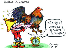 Aunque el horario cambió a nivel nacional, la verdad es que nos tiene sin cuidado, salvo el impacto que pueda tener en la naturaleza, como ilustra la caricatura de Osuna.