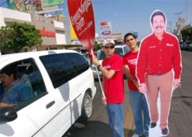 El precandidato del PRI en Cajeme Ernesto Vargas Gaytán hizo un recorrido por el primer cuadro de Cd. Obregón, en compañía del equipo Conexión Joven, encabezado por Fidel Covarrubias, para tener un acercamiento con la gente que transitaba.