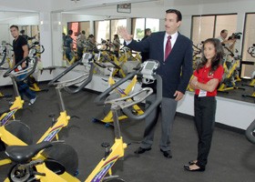 Con motivo de los festejos por el Día del Niño que consistieron en la instalación de un Cabildo Infantil, el Presidente Municipal Francisco Villanueva Salazar llevó a la Niña Alcaldesa 2009, Sofía López Valdez a conocer Laguna GYM, donde próximamente se contará con un área de ejercicio infantil.