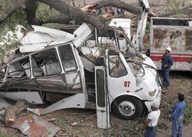 Todavía no terminaba de sentarse doña Josefina Tellechea de Gutiérrez cuando un fuerte crujido se escuchó y el camión al que recién se había subido era aplastado por un viejo álamo.
