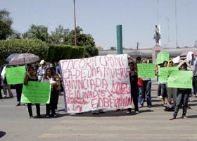 Vecinos de Cocorit se manifestaron frente a Palacio municipal en apoyo a la familia del chofer de camión urbano muerto al caer un árbol sobre la unidad.