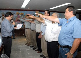 Fue el alcalde Villanueva Salazar quien se encargó de tomarle la protesta de rigor a los dos equipos que, desde ayer, son uno solo en este proceso.