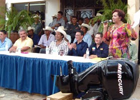 Los pescadores de las comunidades yaquis recibieron 100 motores para las pangas que habrán de utilizar dentro de dos días para salir a la captura del camarón.
