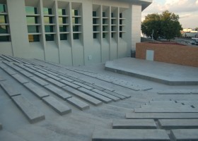 Sin embargo el teatro al aire libre del CUM es un simle foso revestido de concreto en forma de gradas. No tiene un sólo elemento estético que llame la atención. Sólo concreto.