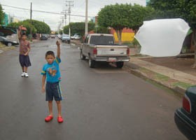 Ajenos a las preocupaciones de los adultos, los niños aprovecharon el aire fresco de "Jimena" para imporvisar papalotes con bolsas de plástico.