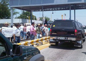Luego de una caravana de automóviles que provocó grandes filas de automóviles a lo largo de la carretera Internacional, los manifestantes se apostaron durante una hora y media en el sitio de cobro.