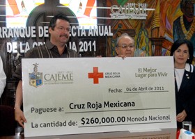 Con un donativo de 260 mil pesos por parte del Ayuntamiento de Cajeme, el alcalde Manuel Barro Borgaro oficializó el inicio de la colecta anual de Cruz Roja Mexicana en el municipio bajo el lema “Con tu ayuda podemos seguir adelante”.