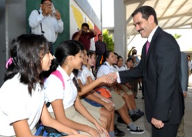 Padres y maestros de la Secundaria General # 9 “Arq. Gustavo F. Aguilar Beltrán” y el Jardín de Niños “Evangelina Paredes Pesqueira” de la Colonia Tirocapes, recorrieron junto al Gobernador Padrés las instalaciones que fueron remodeladas con una inversión de casi 3.5 millones de pesos.