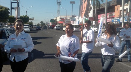 En respaldo a las candidatas a la Presidencia de la República, Josefina Vázquez Mota, y a la diputación federal por el distrito 06, Sara Martínez de Teresa, así como a la formula de Acción Nacional de candidatos al Senado, Francisco Búrquez Valenzuela y Florencio "Chito" Díaz, en un ambiente de fiesta y unidad, los panistas encabezados por la candidata a la diputación Federal, entregaron volantes a los automovilistas.