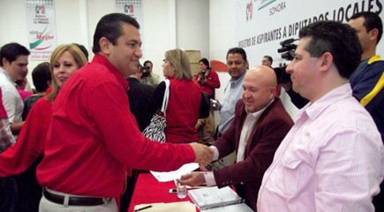 También fue acompañado por Adolfo García Morales, Presidente de la Comisión Estatal de Procesos Internos del PRI en Sonora, así como Alonso Coronado Aguilar, en la entrega del acta de registro.