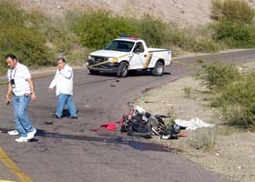 Se trata de un solitario motociclista procedente de Guasave, Sinaloa, que justo en el kilómetro 29 en una curva fue embestido por una camioneta Lobo de color blanco modelo reciente.