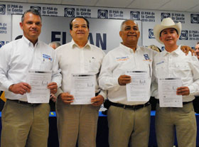 Se registran Raúl Castelo,Héctor Rodríguez, Jesús Félix Holguín y Manuel Borbón, ante la Comisión Estatal de Elecciones del PAN en Sonora, como precandidatos a diputado locales, de este partido por los distritos XV,XVI, XVII Y XVIII, respectivamente.