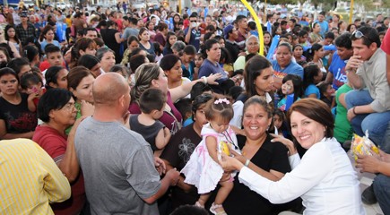 Durante en la celebración los 2 mil niños de Pueblo Yaqui y Esperanza se divirtieron con la música, payasitas, dulces y regalos que se Eloisa Flores les brindó al dejar en claro que en su propuesta la familia, los valores y la educación, serán el centro de sus programas.