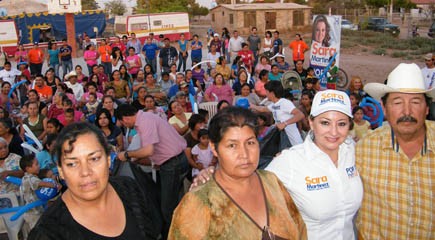 Y para sus hijos tenemos que generar oportunidades de trabajo aquí mismo para que no se tengan que ir a la ciudad y pasar penurias por estar fuera de su casa; de igual manera vamos a becar a quienes quieran estudiar y superarse, prometió Sara Martínez ante los asistentes que aplaudieron emocionados al escuchar las propuestas de quien seguro será su representante en el Congreso de la Unión.