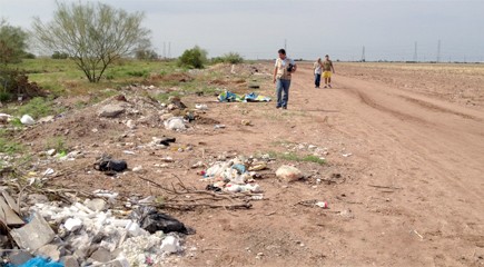 Vecinos de este sector de Ciudad Obregón, aseguran que a falta de una unidad deportiva o parque donde caminar, acuden a este punto ubicado al final de la calle Valle del Pascola en la colonia Valle Dorado y donde diariamente se encuentran nuevos bultos de basura, así como ramas, escombro y animales muertos.