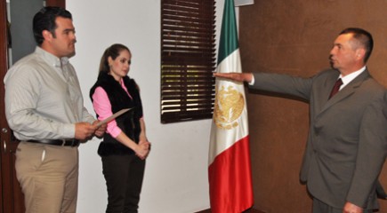 Para asumir su nueva responsabilidad, tomó protesta ante el alcalde Rogelio Díaz Brown, su esposa Susy Terminel de Díaz Brown, y el secretario del Ayuntamiento, Antonio Alvídrez .
