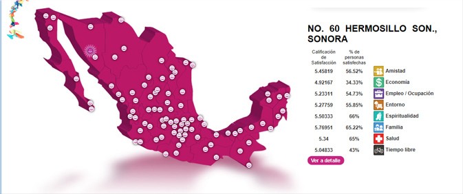 En dicho "Felizómetro", Obregón ocupa el lugar número 41 mientras que Hermosillo tiene el 60 y Nogales el 93.