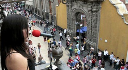 CD. DE MÉXICO.- La soprano Ana Gabriela Estévanez durante su presentación en el programa Ópera en Balcones de Madero, que promueve a los jóvenes talentos mexicanos y halaga a los visitantes del Centro Histórico.