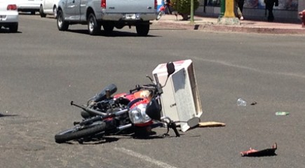 Al mediodía, en el crucero de Miguel Alemán y No Reelección, ocurrió uno más de los muchos accidentes en los que se ven involucrados repartidores de comida a domicilio.