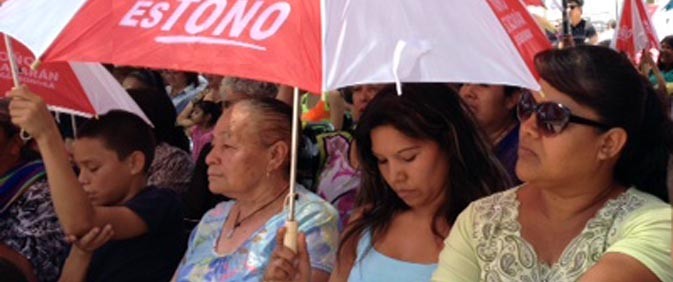 Después de Toño sigue al micrófono una de las presentadoras arengando a las doñitas que ahora sí de plano ya no soportan y empiezan a retirarse, dándole la espalda a la rubia que toma el micrófono para insistir en lo buena persona que es el diputado Astiazarán.