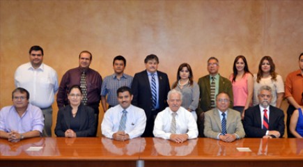 El rector Roberto Cruz Medina recibió en su oficina a Héctor Fernando Sánchez Posadas, vocal ejecutivo del Comité de Ingeniería y Tecnología y a Javier Díaz de la Serna Braojos, director técnico de Ciees, quienes arribaron a la Institución con el propósito de observar la conducción de dicho proceso de evaluación.