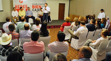 El candidato a la presidencia municipal de Cajeme por la alianza PRI-PVEM y Nueva Alianza, en plática con empresarios escuchó los planteamientos de quienes generan empleos en el municipio y promueven la inversión, ya sea regional, nacional o extranjera y éstos puntualizaron la importancia de atraer empresas para instalarse en la región, así como de detonar y fortalecer empresas locales.