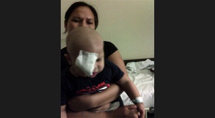 El niño Fernando Jonathan Valdez Ayala fue dado de alta del Centro Médico de Occidente en Guadalajara, Jalisco, donde le fue extirpado el ojo izquierdo por un tumor maligno.