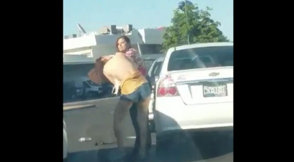 HERMOSILLO.- Por un incidente de tráfico vehicular, una mujer bajó de su automóvil y golpeó a otra hasta dejarla desnuda de la cintura hacia arriba.