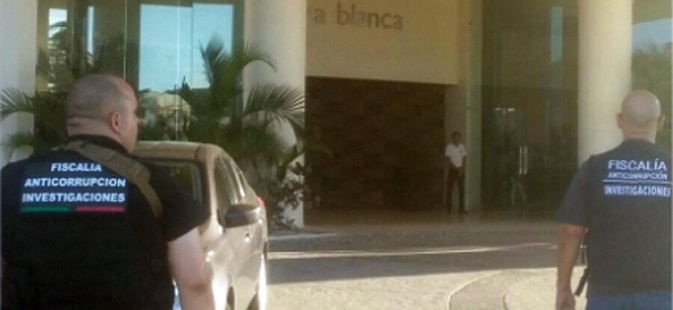 SAN CARLOS, NUEVO GUAYMAS.- Elementos de la Fiscalía Anticorrupción de Sonora catearon esta tarde de viernes un edificio propiedad de Bernardo Campillo García, secretario de Salud durante la administración del gobernador Guillermo Padrés.