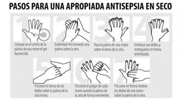 El alcohol gel es el desinfectante más conocido pero es más importante que el lavado de manos con agua y jabón o con gel sea el correcto, es decir, que se realice cuando menos en cinco partes, desde el frotarse las manos con el gel, pasarlo por las palmas, entre los dedos y uñas y hacer frotamientos giratorios con las yemas de los dedos.