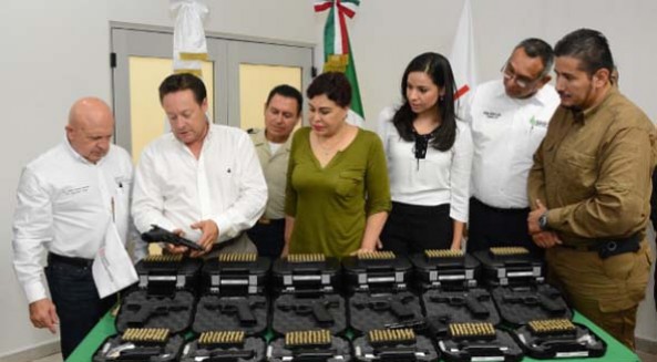 Un total de 139 armas cortas calibres 9 milímetros y .40 así como 4 mil 170 cartuchos fueron entregados a la Secretaría de Seguridad Pública Municipal, como parte del programa Migración y Actualización de Armamento y Municiones Fuerza de Tarea Preventiva de Cajeme, en ceremonia presidida por el  Alcalde Faustino Félix Chávez y el Secretario de Seguridad Pública en la entidad, Adolfo García Morales.