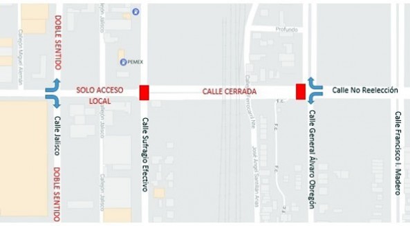A partir de las primeras horas del día lunes 03 de julio, el crucero de la calle Sufragio Efectivo y No Reelección se abrirá al tráfico vehicular, esto después de realizar los trabajos de modernización con concreto hidráulico de dicha rúa.