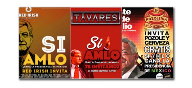 “Que todo México se entere si AMLO gana la presidencia de México #RedIrishPub se pone guapo con su super promoción”, dice la promoción del establecimiento.