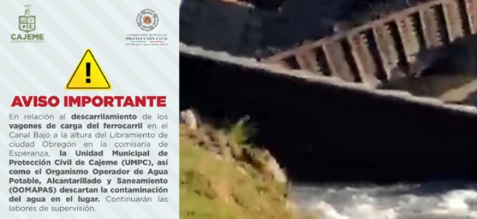 El Oomapasc y la Unidad Municipal de Protección Civil descartan que el agua potable pueda ser contaminada por los vagones del ferrocarril que cayeron al Canal Bajo.