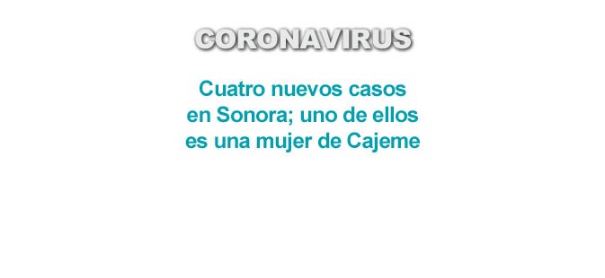 HERMOSILLO.- Una mujer cajemense de 82 años de edad contagiada por su hijo es uno de los cuatro nuevos casos de coronavirus registrados en Sonora este fin de semana.