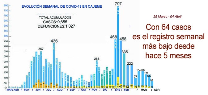 La cifra más baja anteriormente fue de 50 casos y se registró a fines del mes de octubre, después de eso vino un crecimiento acelerado hasta llevarnos a la etapa más difícil, con mayor número de casos y defunciones, ocurrido esto de noviembre a enero.