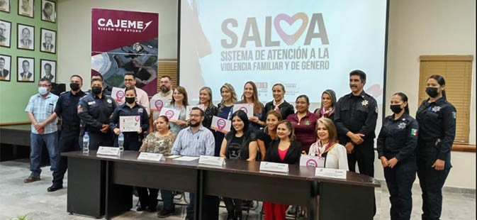 Explicó que, mediante un trabajo coordinado con Karla González, directora del Instituto Cajemense de la Mujer (ICM), se presentó el Sistema de Atención a la Violencia Familiar y de Género (Salva), a empresarios locales y personal del H. Ayuntamiento de Cajeme, haciendo énfasis en la importancia de sumarse a este programa preventivo.