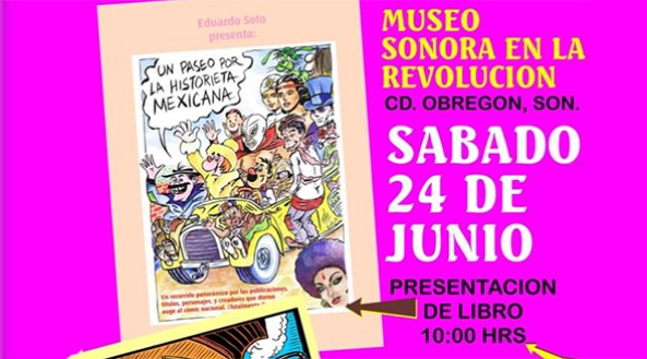 El próximo sábado 24 de junio del presente año, Eduardo Soto, Director del Museo de la caricatura y la Historieta (MUCAHI), con sede en Anenecuilco-Cuautla, Morelos, participará en una conferencia con el tema “La Historia de la Historieta Mexicana” en las instalaciones del Museo Sonora en la Revolución (MUSOR).