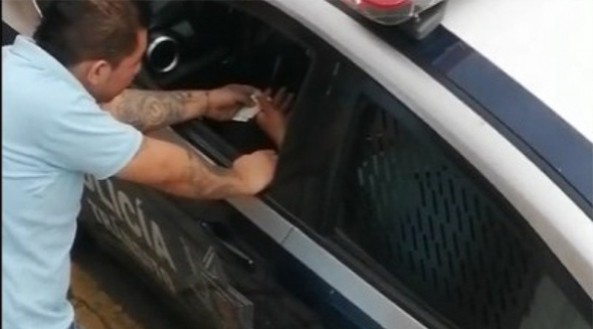 Además, en otras imágenes de video, se observa que oficiales de tránsito municipal mantienen un diálogo con una persona, la cual presuntamente fue abordada tras incurrir en faltas de tránsito, mientras uno de los oficiales visiblemente recoge billetes del suelo, incurriendo presuntamente en una falta.