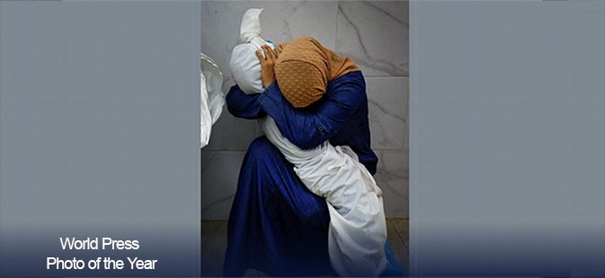 El fotógrafo de la Agencia Reuters Mohammed Salem captura un momento de dolor insoportable: Ina Abu Maamer abraza el cuerpo de su sobrina Saly, que murió en un ataque de misiles israelíes contra Gaza.