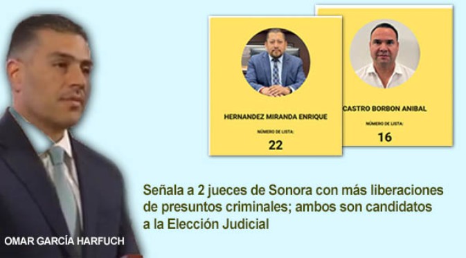 HERMOSILLO.- Dos jueces de Sonora fueron denunciados por el secretario de Seguridad federal por facilitar la liberación de presuntos criminales, dos juzgadores que al mismo tiempo son candidatos a la elección del Poder Judicial de la Federación (PJF) del 1 de junio.