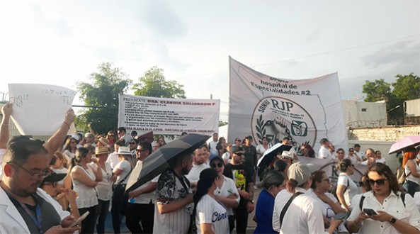 En la calle 400 y Paseo Miravalle trabajadores de la salud adscritos al hospital 2 de la Unidad Médica de Alta Especialidad quienes exigieron la recuperación del régimen de jubilaciones y pensiones, un tema en el que se han manifestado ya en diversas ocasiones sin tener aún una respuesta.