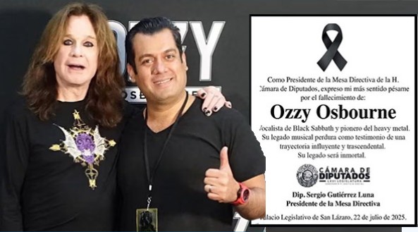 Aunque usted no lo crea: El presidente de la Mesa Directiva de la Cámara de Diputados en México publicó una esquela a título de este órgano legislativo por el fallecimiento del cantante rockero Ozzy Osbourne, "vocalista de Black Sabath y pionero del heavy metal", dice el comunicado.