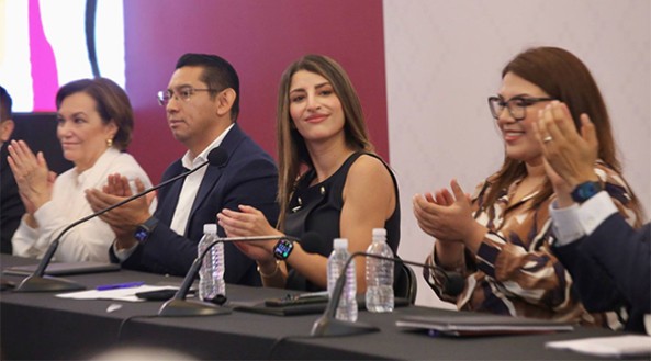 En el evento estuvieron presentes María Dolores del Río Sánchez, secretaria de Anticorrupción y Buen Gobierno; Paloma Terán Villalobos, coordinadora general del Sistema Estatal de Comunicación Social; y René Edmundo García Rojo, presidente de la Comisión de Justicia y Derechos Humanos del Congreso del Estado.